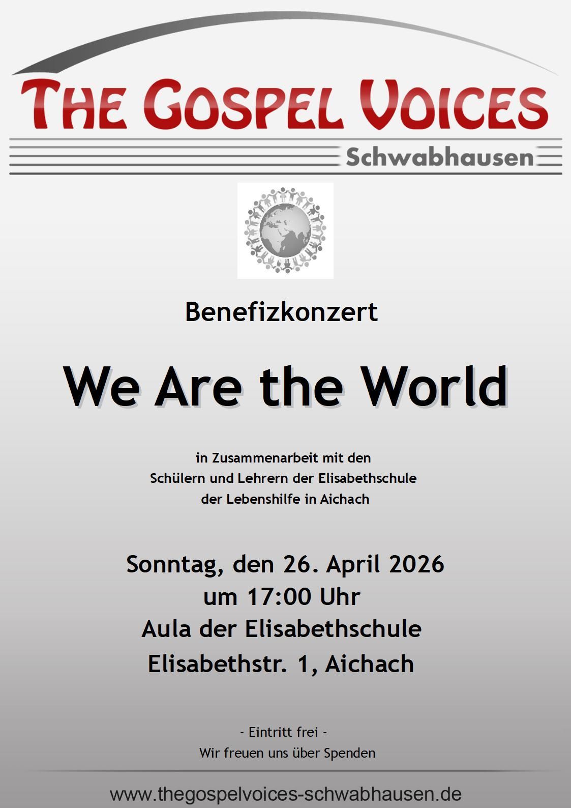 17:00 Uhr Benefizkonzert in Zusammenarbeit mit den Schülern und Lehrern der Elisabethschule der Lebenshilfe in Aichach, Elisabethstr. 1